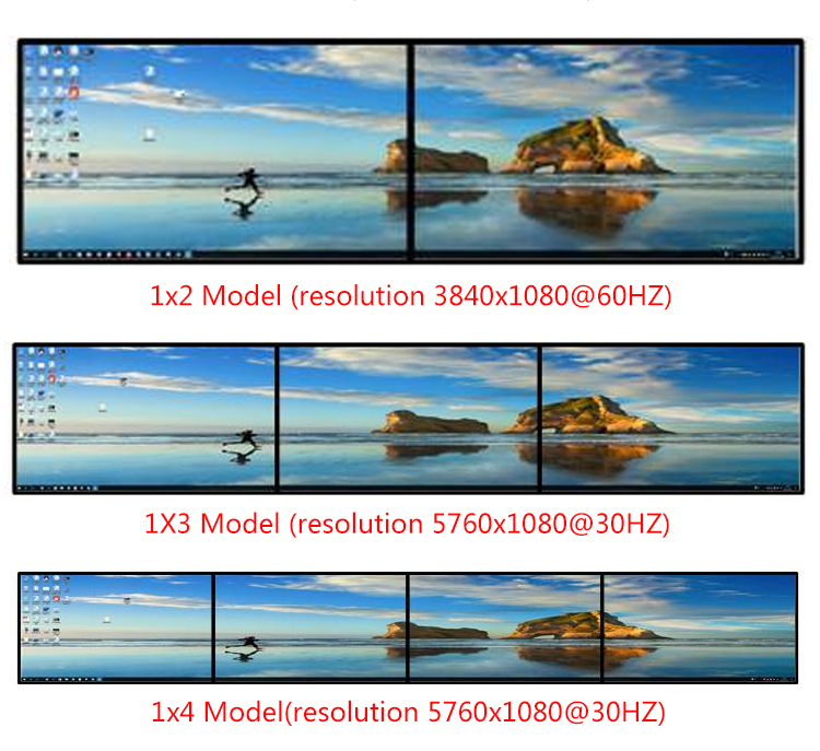 采用模塊化設(shè)計,單機可定制2至24畫面拼接,如常用的1x2畫面拼接、2x2四畫面拼接、2x3或3x2六畫面拼接、2x4八畫面拼接、3x3九畫面拼接、2x5十畫面拼接、3x4十二畫面拼接等。